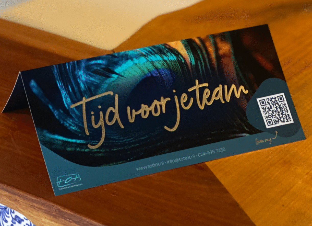 Je hebt zojuist de QR-code gescand op de Tijd voor je Team-kaart. Mooi dat je de eerste stap hebt gezet naar een sterker en meer verbonden team. Wij geloven dat wanneer teams écht goed samenwerken, er synergie ontstaat: verschillen worden benut, kwaliteiten versterken elkaar en obstakels worden sneller overwonnen. Zo groeit niet alleen de prestatie, maar ook de betrokkenheid en het werkplezier.